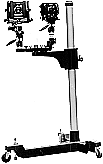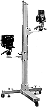 Able stand L-360 No.460 (Utility Model) OH - 165cm Effective H -164cm Min. H to panhead - 62cm Arm L - 41cm 2 cameras revolve 360Kon the arm. Coincident Lens position allows quick shots. No twist of Synchro cords. |